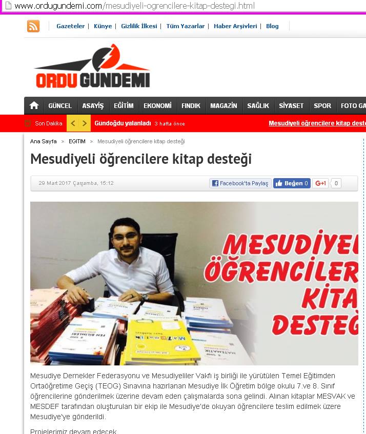 1996 yılında İstanbul merkezli kurulan ve Türkiye genelinde okuyan Mesudiyeli Üniversite öğrencilere yaptığı katkılar ile adından söz ettiren Mesudiyeliler Vakfı, 22 Nisan 2018 Pazar günü Saat:10.00’da İstanbul Kâğıthane Belediye Meclis Salonunda ge