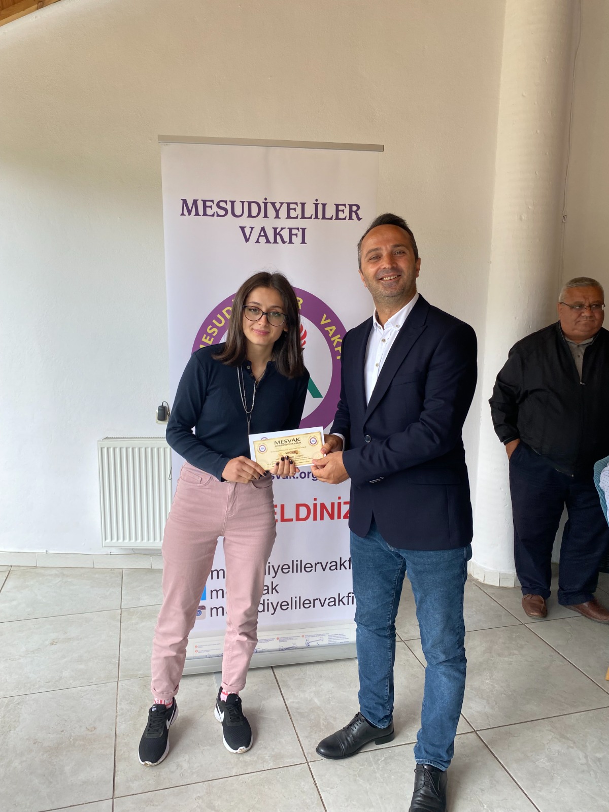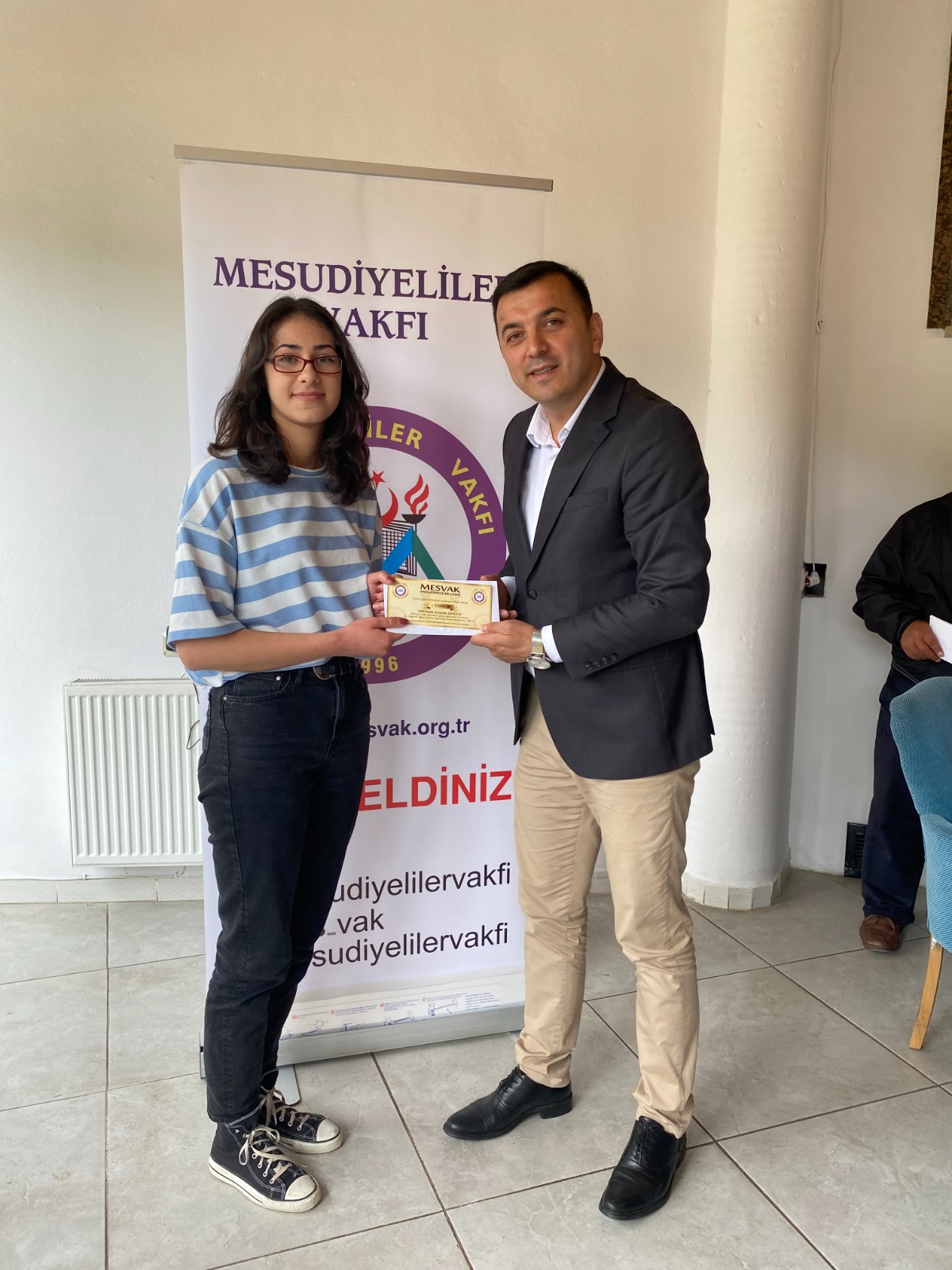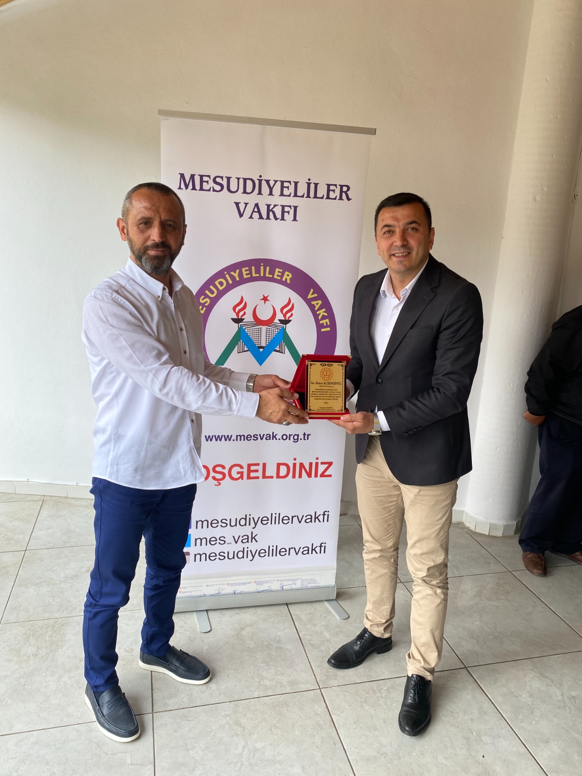 Program sonunda Mesudiye İlçe Milli Eğitim Müdürü Güngör Daşkın tarafından Mesudiyeliler Vakfı Başkanı Ahmet Ali Şengönül'e eğitime katkılarından dolayı teşekkür plaketi verildi.