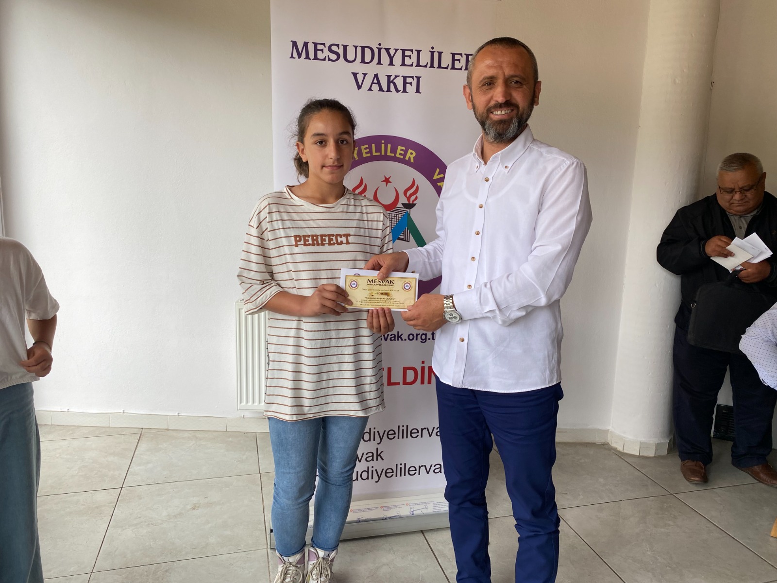 Program sonunda Mesudiye İlçe Milli Eğitim Müdürü Güngör Daşkın tarafından Mesudiyeliler Vakfı Başkanı Ahmet Ali Şengönül'e eğitime katkılarından dolayı teşekkür plaketi verildi.